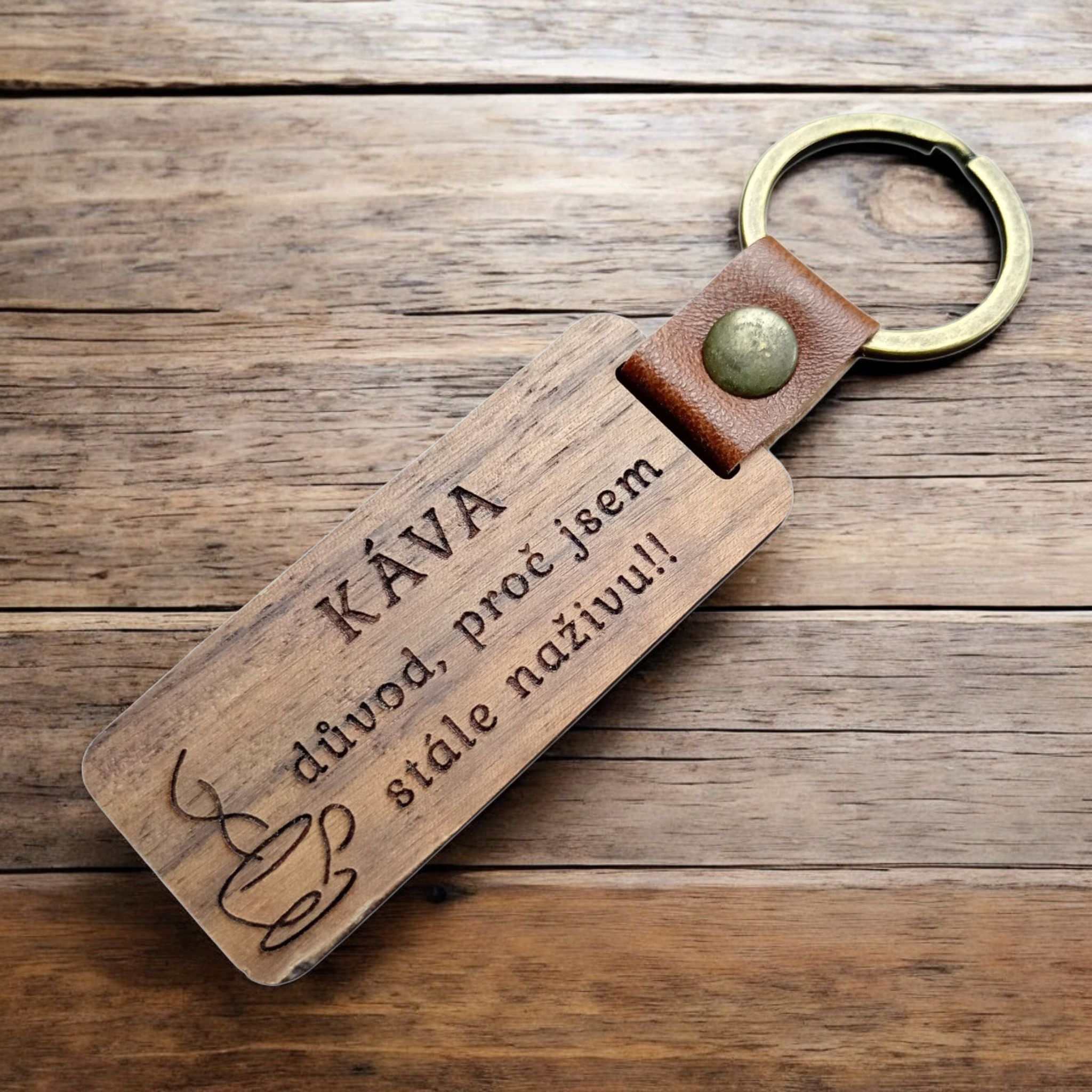 Dřevěná klíčenka s gravírovaným nápisem "Káva, důvod proč jsem stále na živu" je skvělým dárkem pro ty co si nedokážou život bez kávy představit. Klíčenka nabízí elegantní vzhled a pevnost. Precizní gravírování zajišťuje jasný a trvalý nápis. Ideální pro všechny, kteří mají rádi humor a styl!