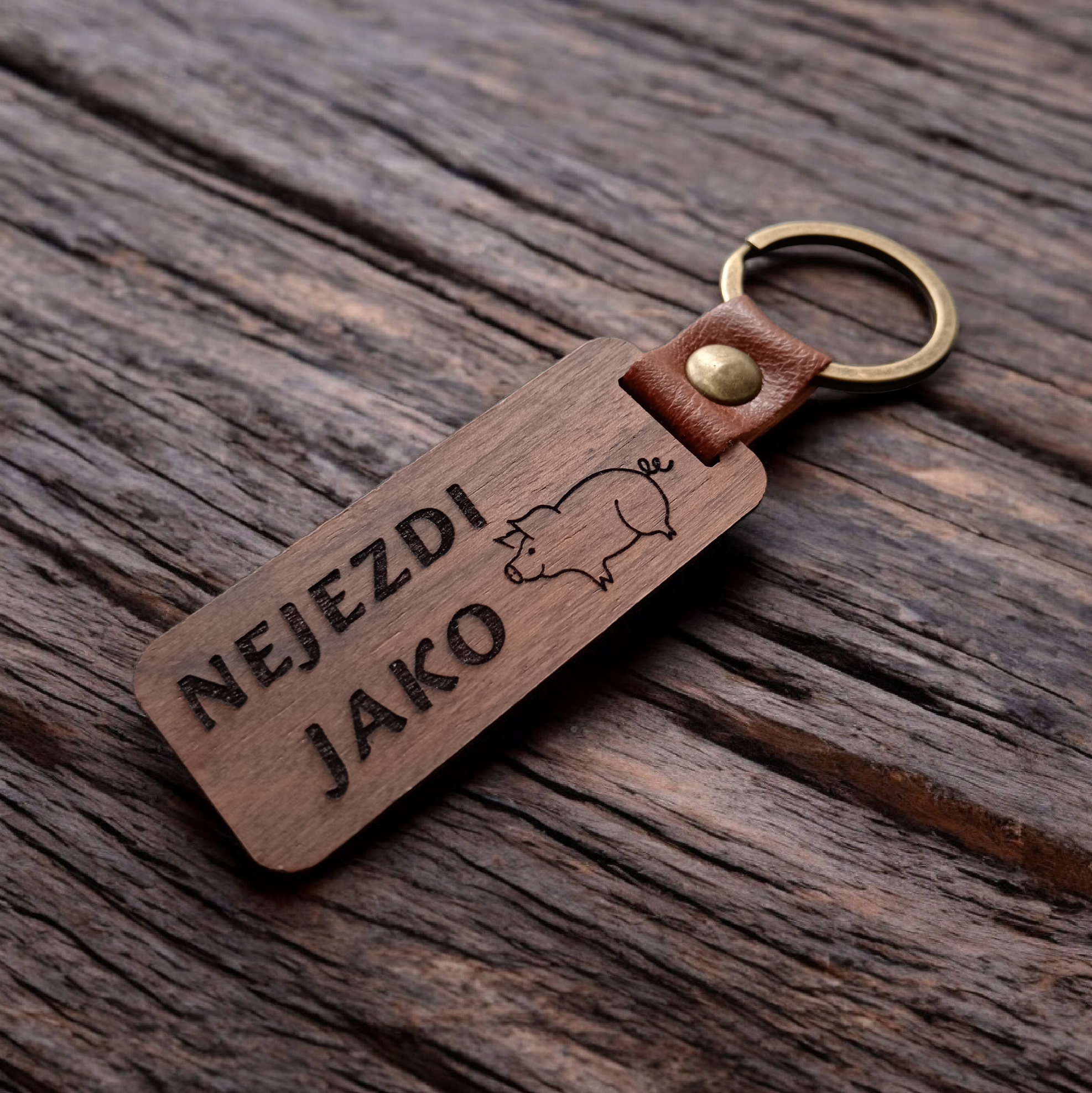 Dřevěná klíčenka s vygravírovaným nápisem „Nejezdi jako prase“ je stylový a praktický doplněk, který pobaví i připomene, že bezpečná jízda má smysl. Klíčenka nabízí elegantní vzhled a pevnost. Precizní gravírování zajišťuje jasný a trvalý nápis. Ideální pro všechny, kteří mají rádi humor a styl!