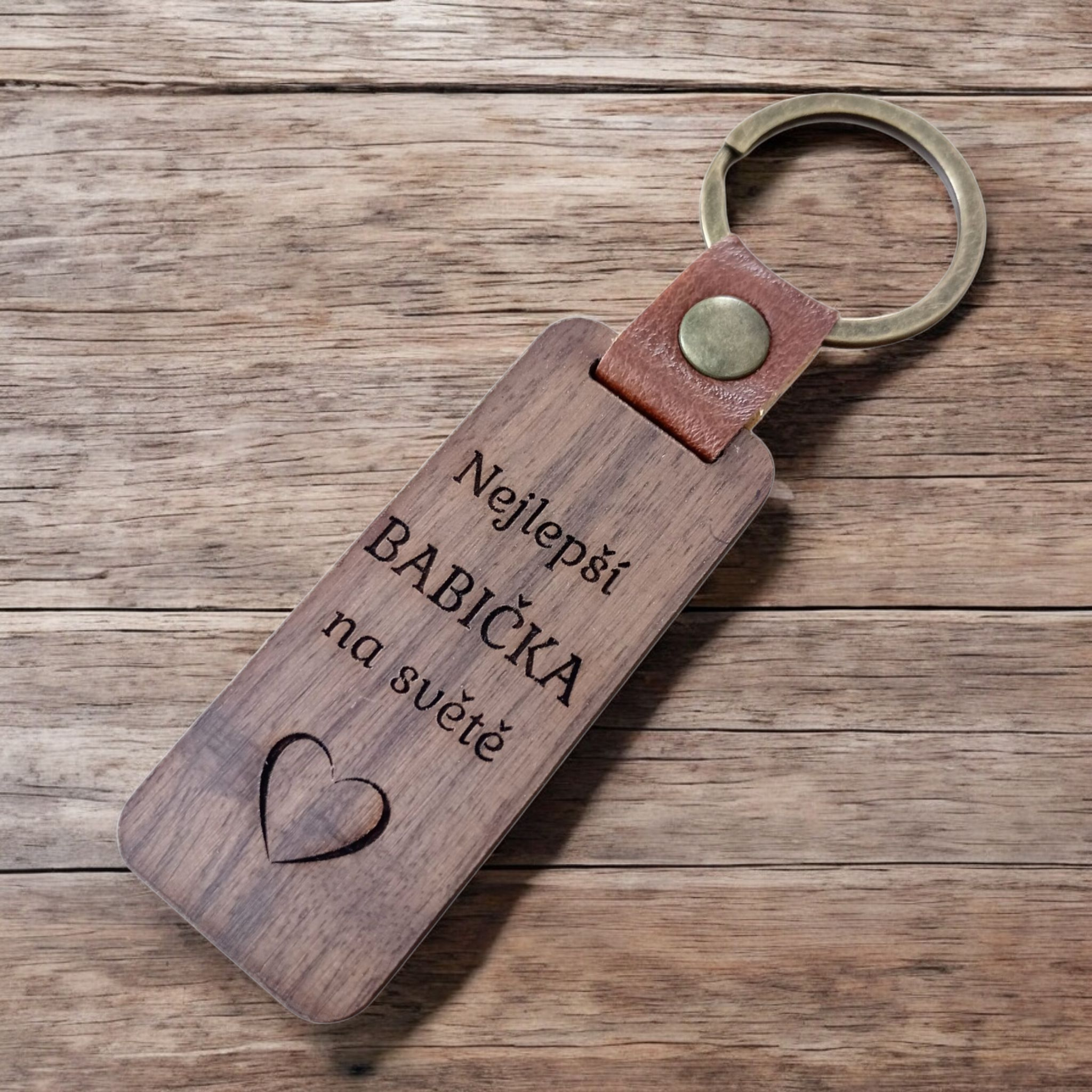 Dřevěná klíčenka s gravírovaným nápisem "Nejlepší BABIČKA na světě" je osobní a originální dárek, který potěší každou babičku. Klíčenka nabízí elegantní vzhled a pevnost. Precizní gravírování zaručuje jasný a trvalý nápis. Ideální způsob, jak vyjádřit svou lásku a vděčnost!