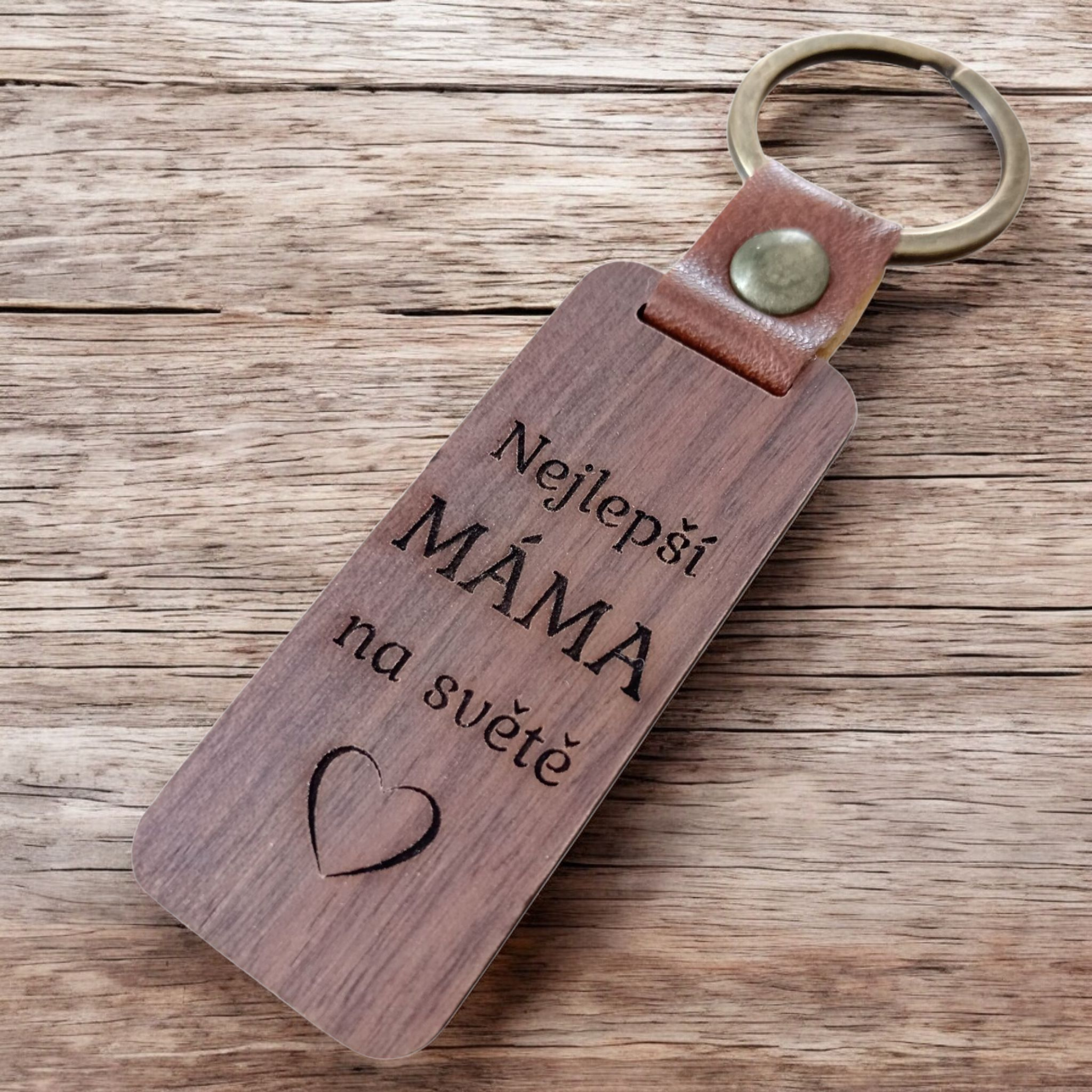 Dřevěná klíčenka s gravírovaným nápisem "Nejlepší MÁMA na světě" je osobní a originální dárek, který potěší každou maminku. Klíčenka nabízí elegantní vzhled a pevnost. Precizní gravírování zaručuje jasný a trvalý nápis. Ideální způsob, jak vyjádřit svou lásku a vděčnost!