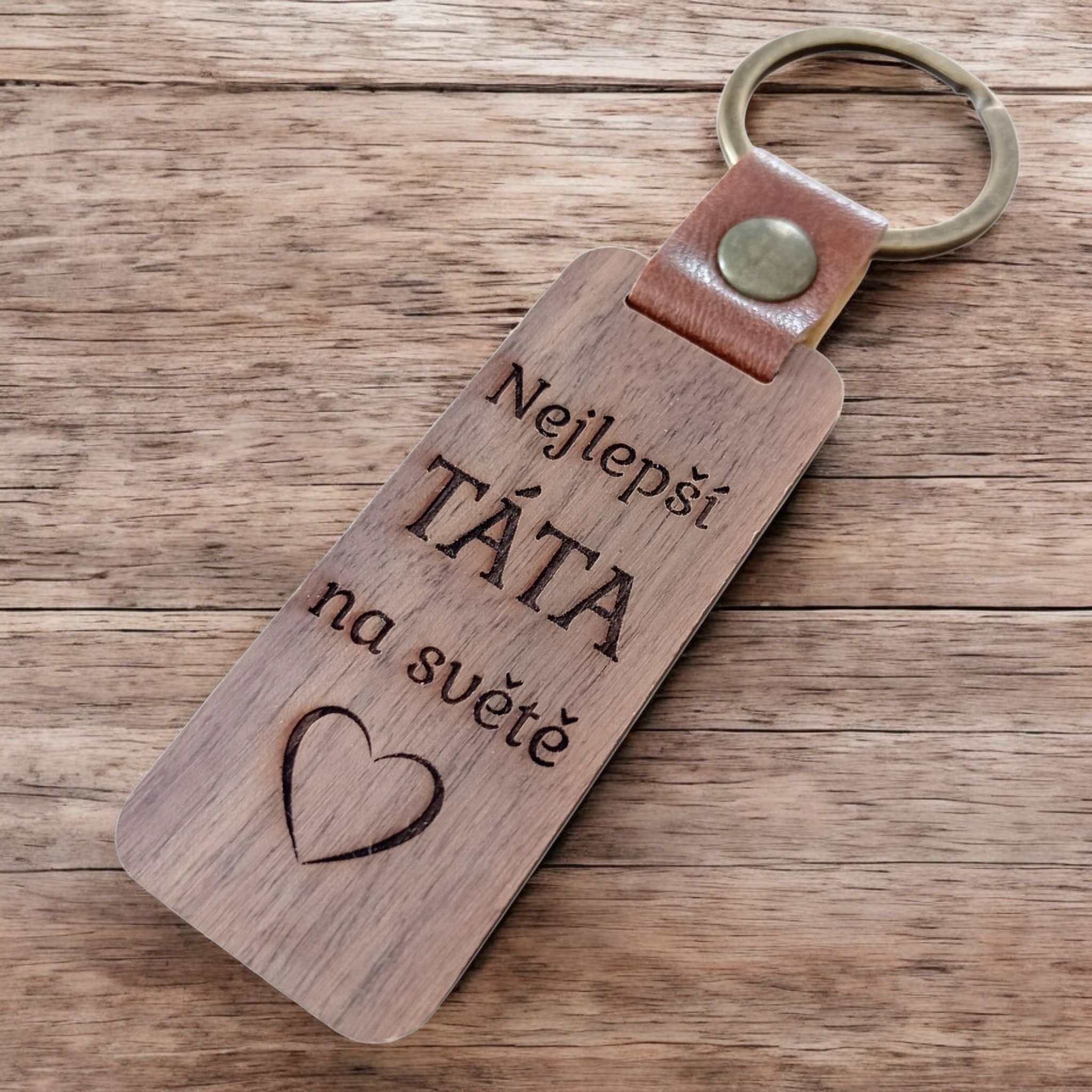 Dřevěná klíčenka s gravírovaným nápisem "Nejlepší TÁTA na světě" je osobní a originální dárek, který potěší každého tatínka. Klíčenka nabízí elegantní vzhled a pevnost. Precizní gravírování zaručuje jasný a trvalý nápis. Ideální způsob, jak vyjádřit svou lásku a vděčnost!
