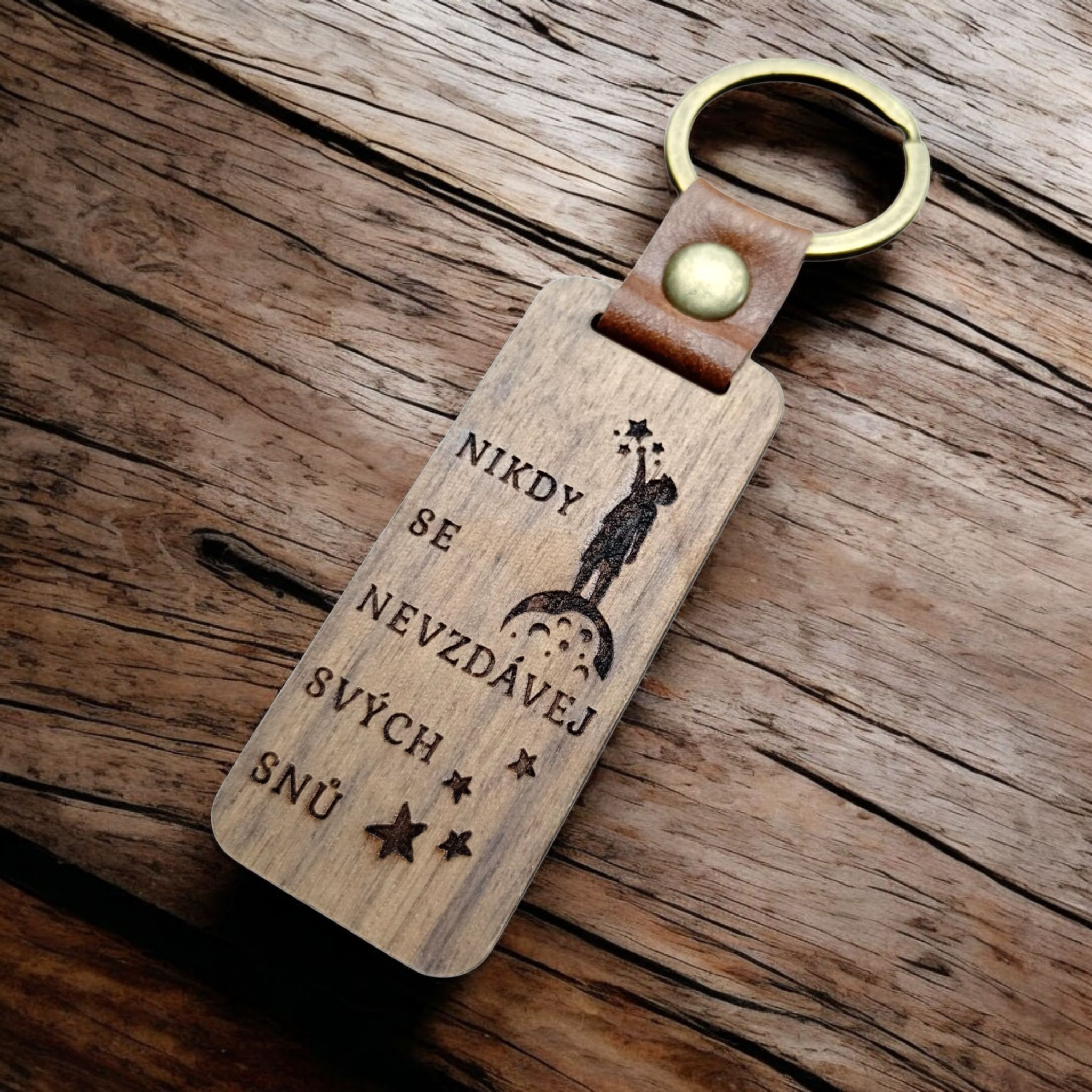Dřevěná klíčenka s gravírovaným nápisem "Nikdy se nevzdávej svých snů" je skvělým a osobním dárkem, který vám pomůže udržet motivaci. Klíčenka nabízí elegantní vzhled a pevnost. Precizní gravírování zaručuje jasný a trvalý nápis. Tento originální dárek bude denně připomínat že se nesmíme vzdát svých snů!