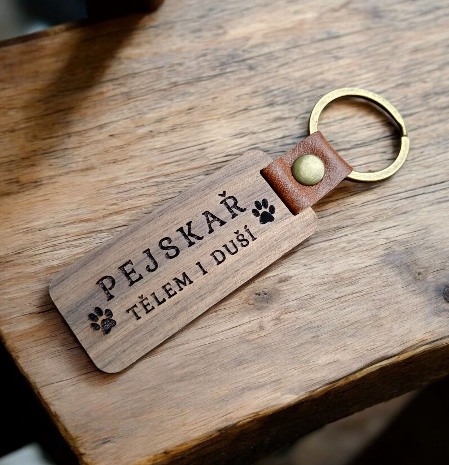 Dřevěná klíčenka s gravírovaným nápisem "Pejskař, tělem i duší " je skvělým dárkem pro všechny pejskaře. Klíčenka nabízí elegantní vzhled a pevnost. Precizní gravírování zaručuje jasný a trvalý nápis. Tento originální dárek potěší každého kdo má pejsky nejen rád, ale bere je jako součást svého života.