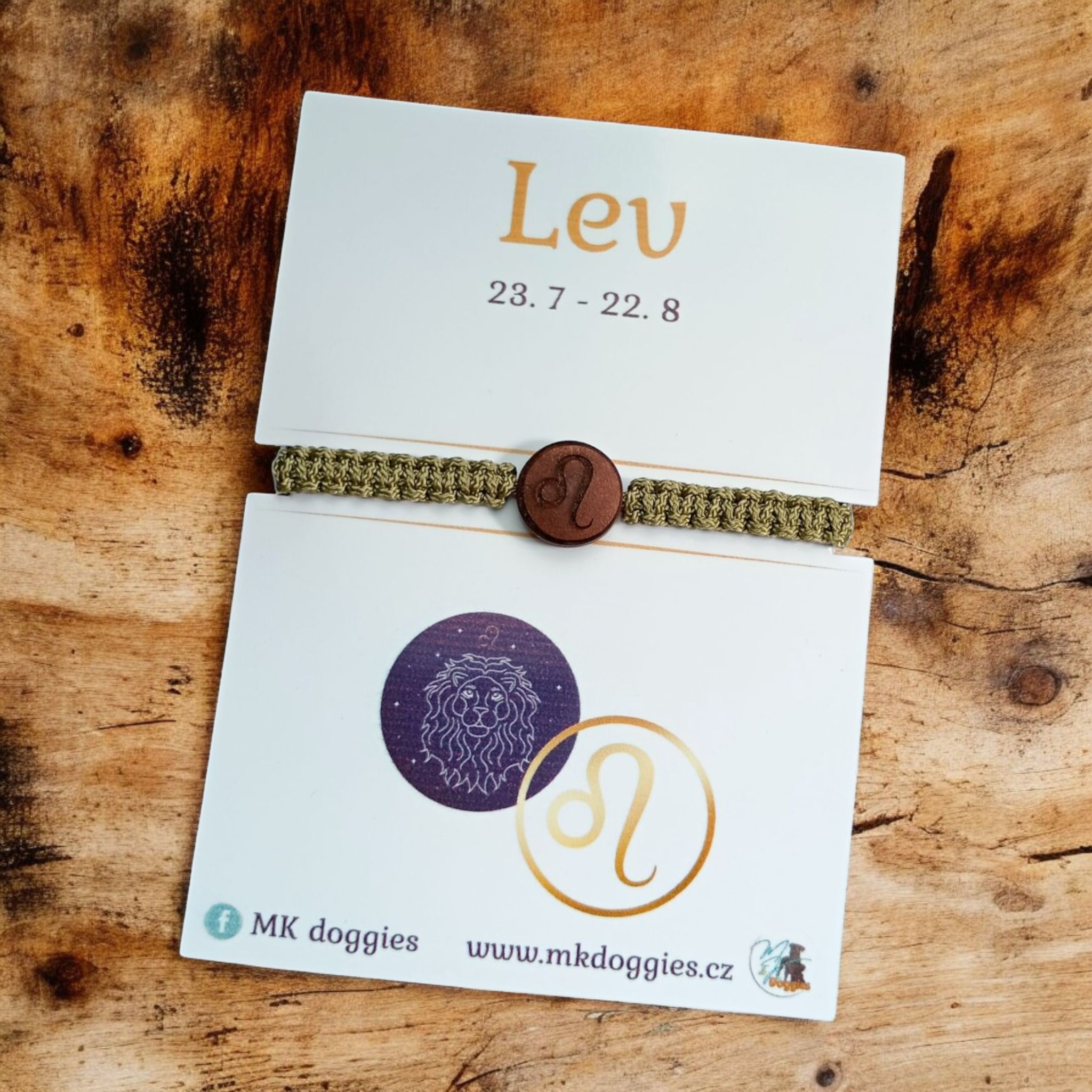 Pletený náramek s gravírovaným symbolem lva na dřevěném korálku v kombinaci s ručně pleteným páskem představuje unikátní spojení elegance a tradičního řemeslného zpracování. Náramek je nejen stylový, ale i symbolický. Je ideální jak pro každodenní nošení, tak i jako osobitý šperk ke speciálním příležitostem.