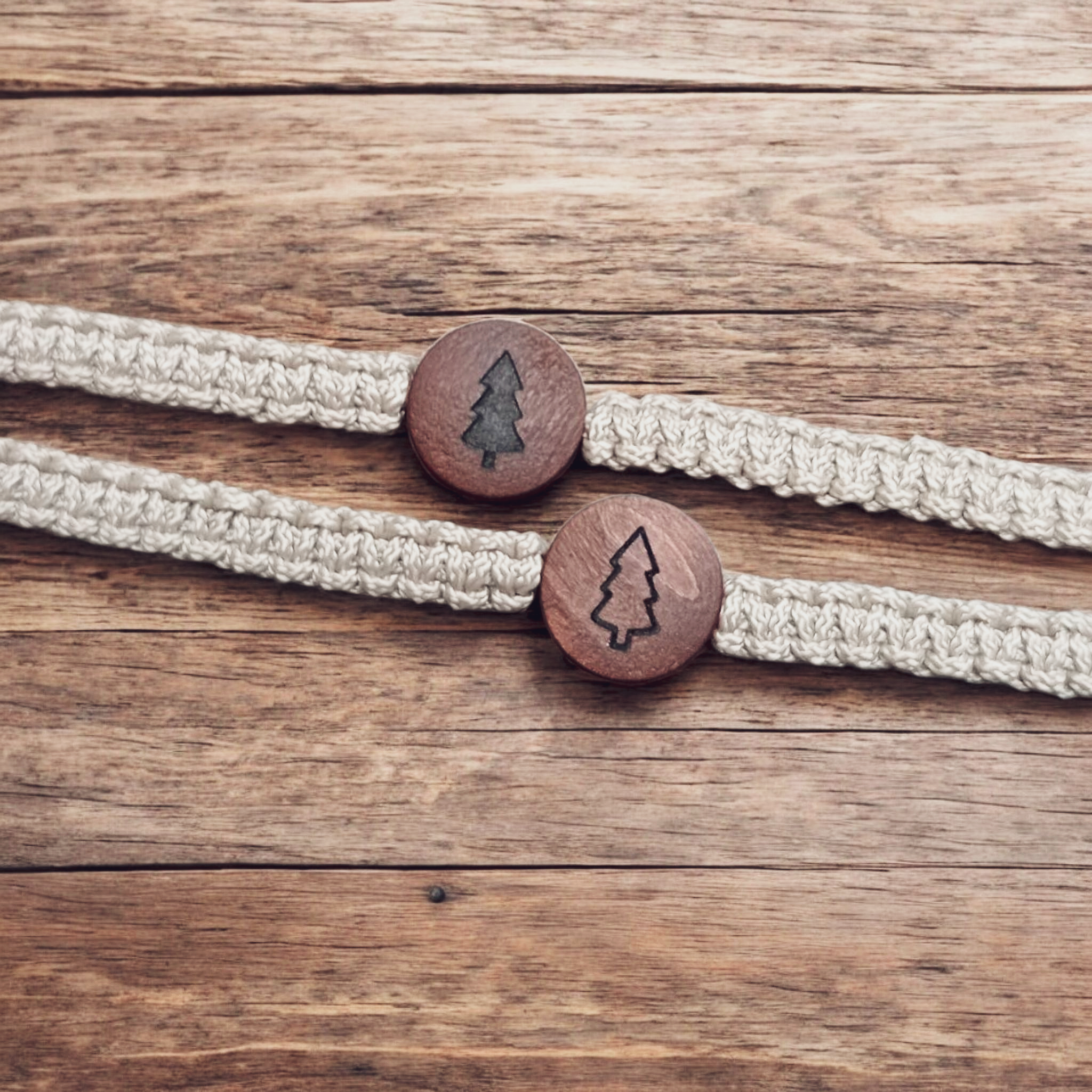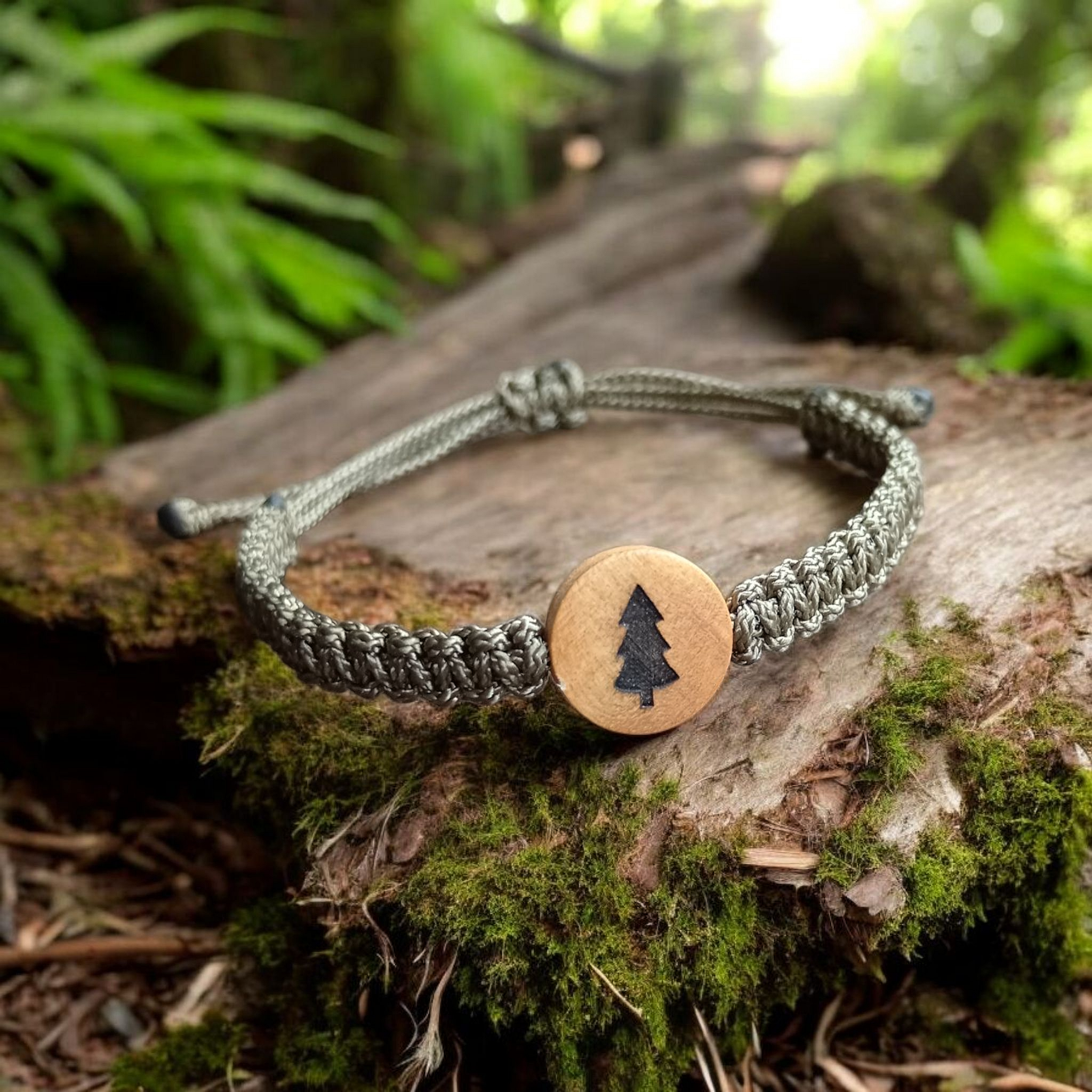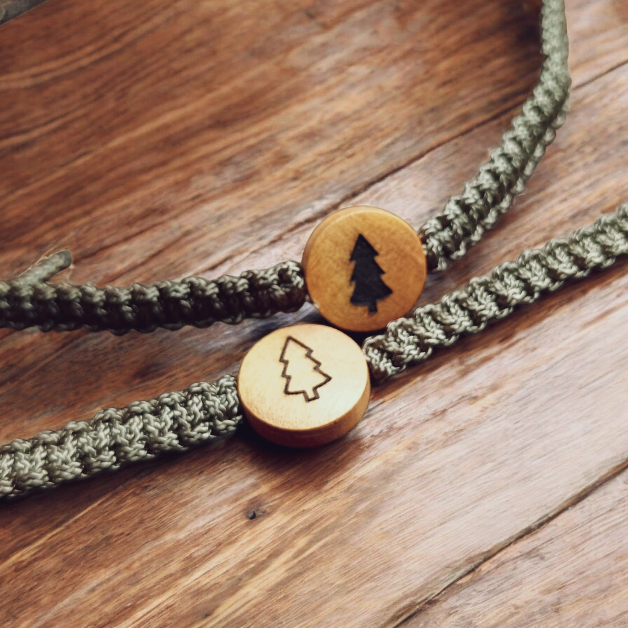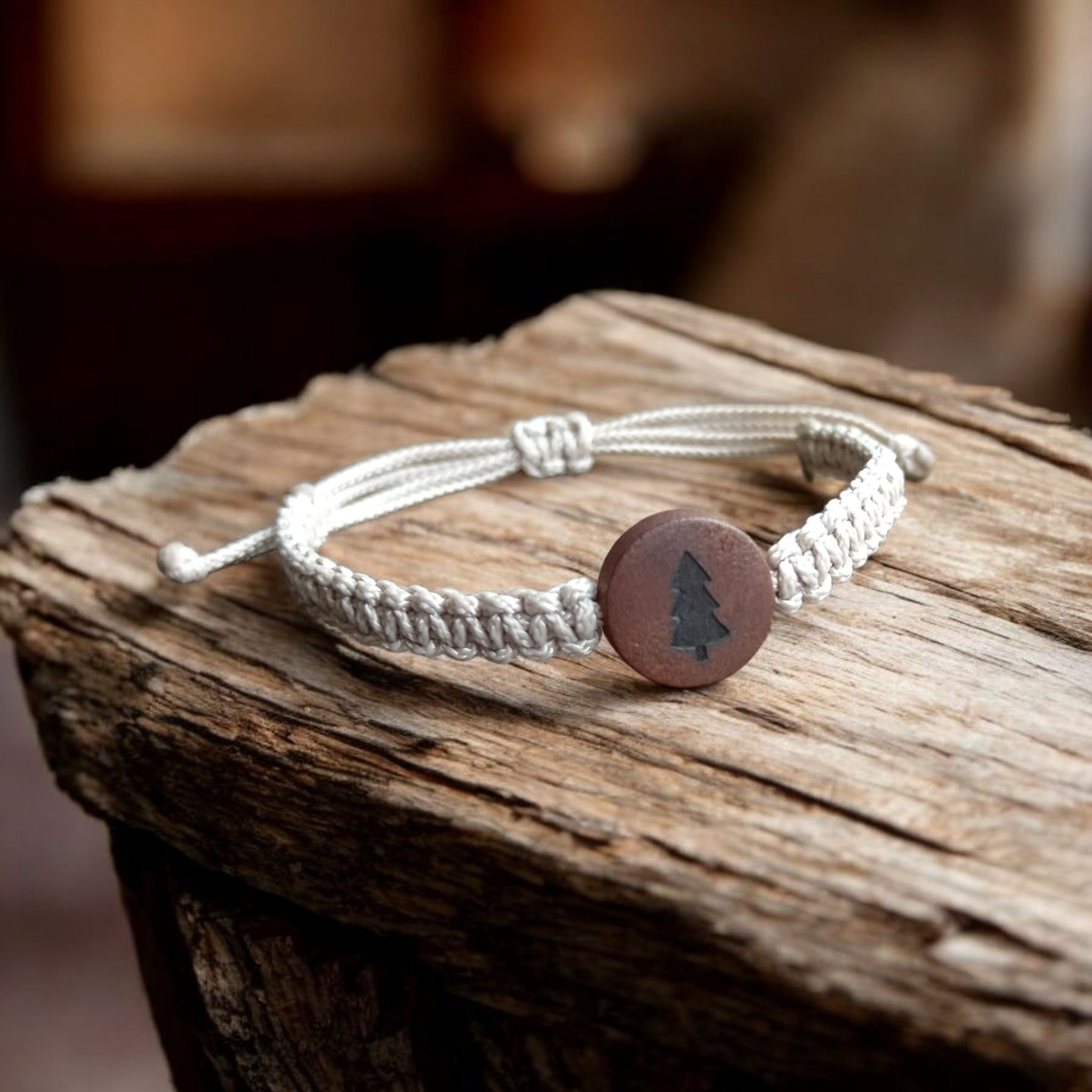 Stylový, ručně pletený náramek s dřevěným korálkem, do kterého jsme precizně vygravírovali motiv jehličnatého stromu. Je symbolem nesmrtelnosti, stálosti, ochrany, věrnosti a naděje, protože zůstává zelený a silný i v nejtěžších časech.