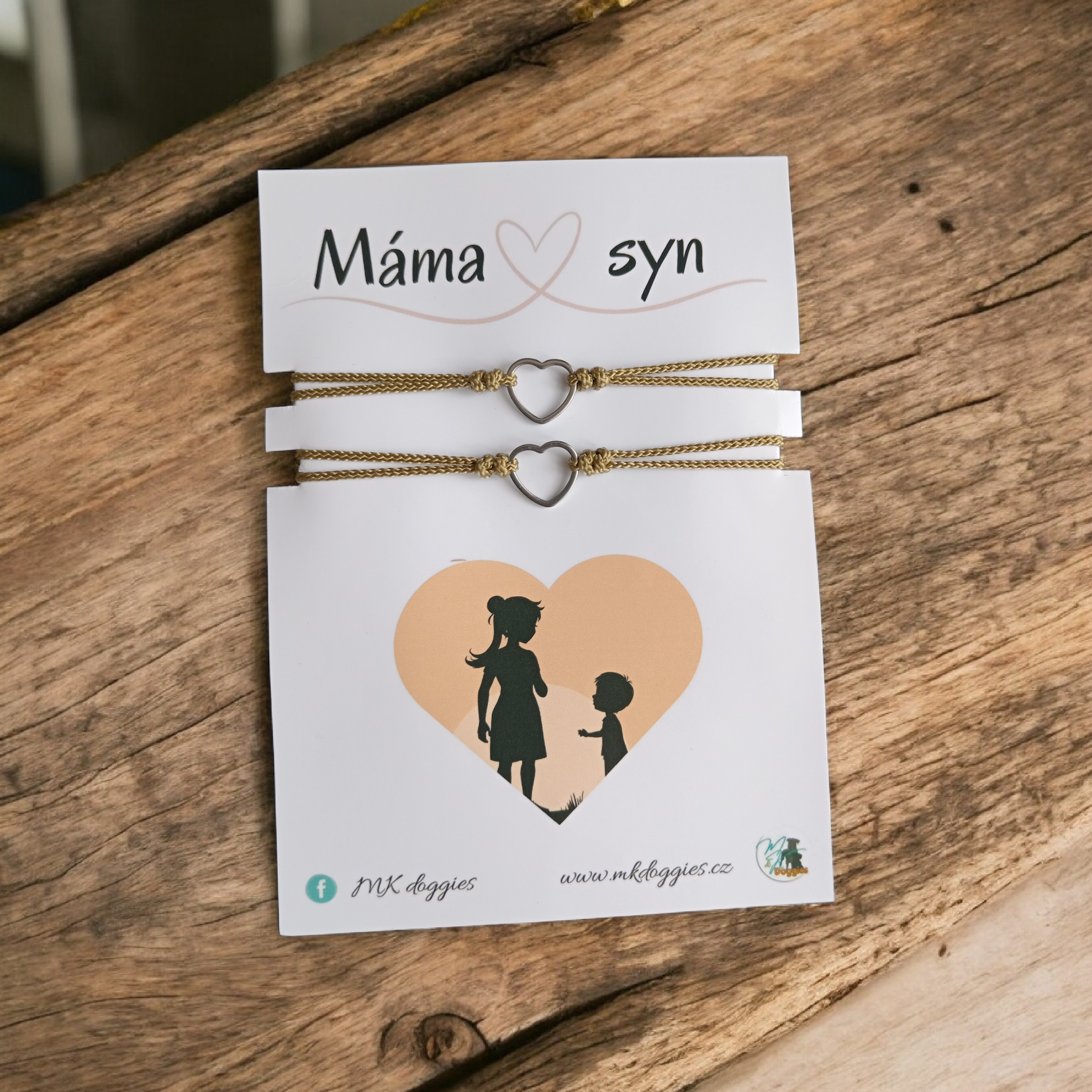 Dva náramky se srdcem na provázku pro mámu a syna.