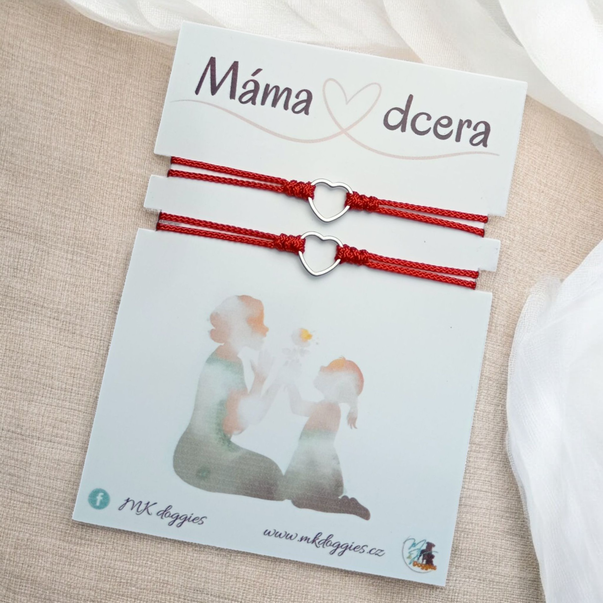 Dva náramky se srdcem na provázku pro mámu a dceru.