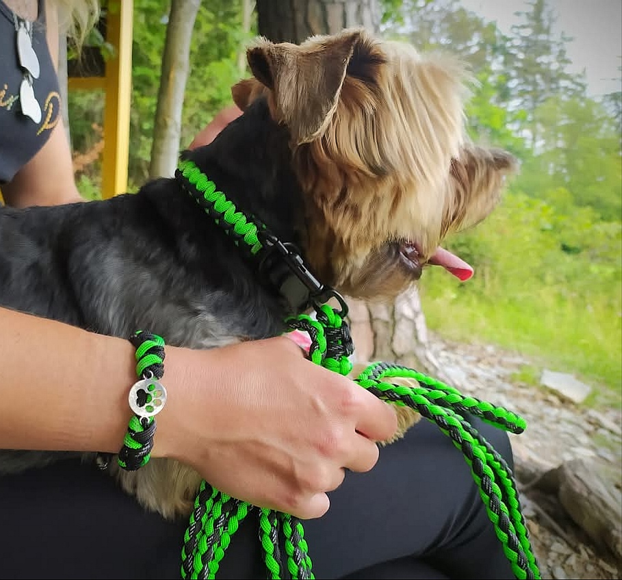 Jako dárek Vám vyrobíme náramek ve stejné barevné kombinaci jako obojek, takže s vaším chlupatým parťákem budete dokonale ladit. Tento osobní doplněk ukáže všem, že patříte k sobě a že vás spojuje silné pouto.