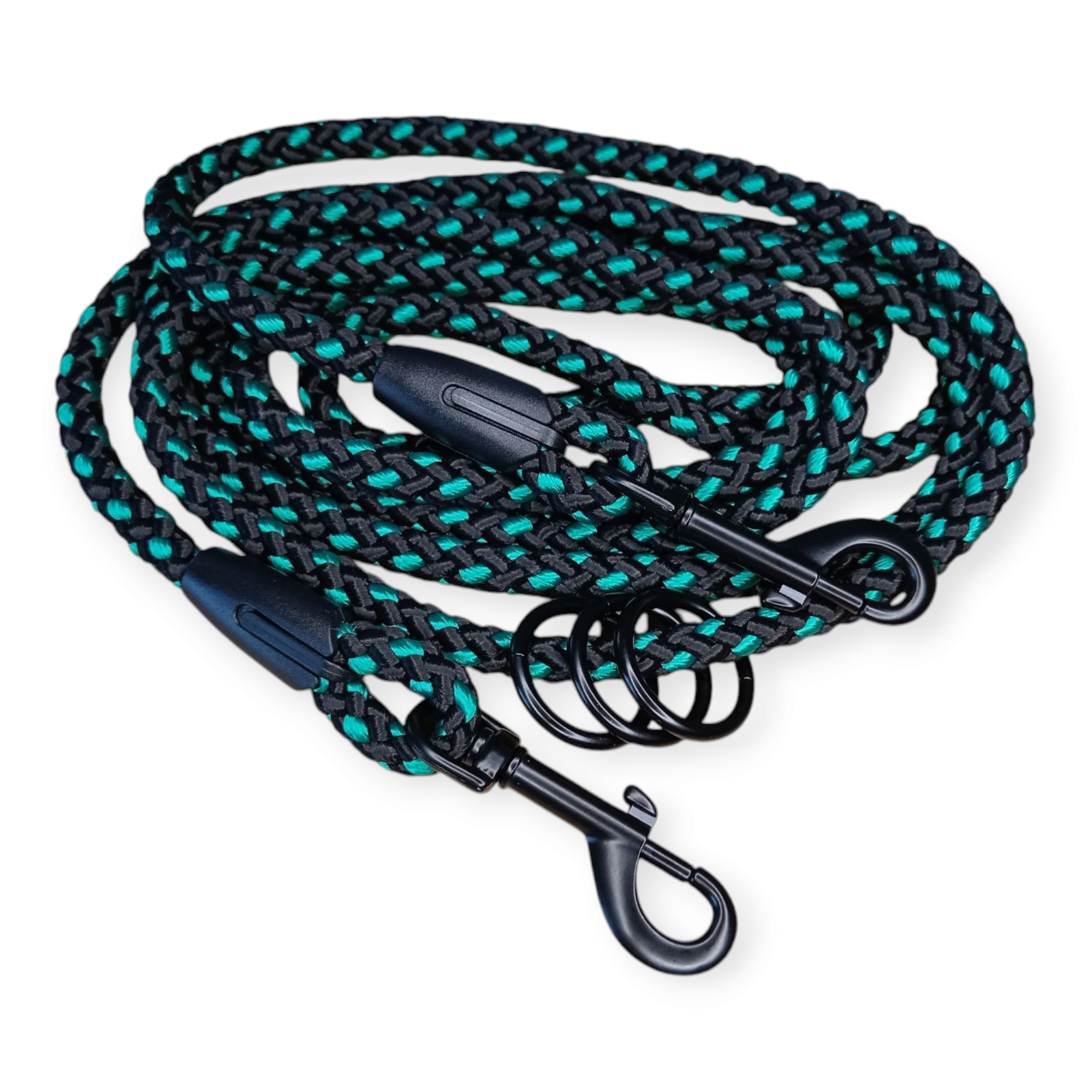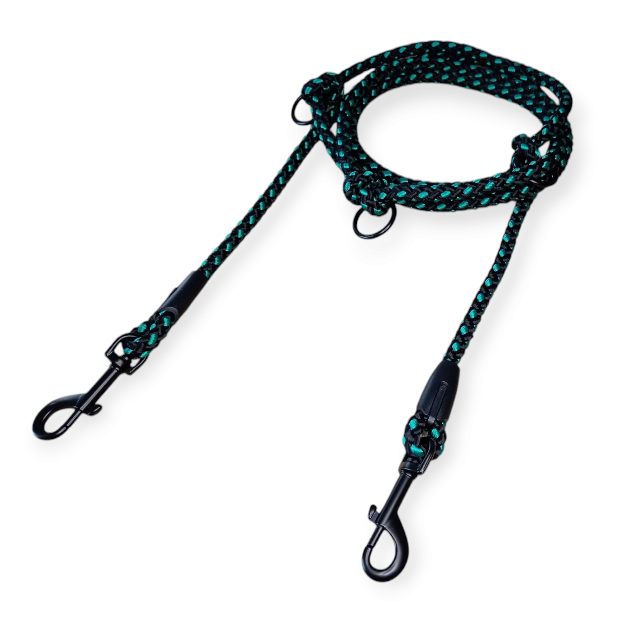 Přepínací vodítko o průměru 10 mm, barevné kombinaci černé a zelené je ideální volbou pro majitele středních psů, kteří hledají odolné a flexibilní řešení pro každodenní procházky.