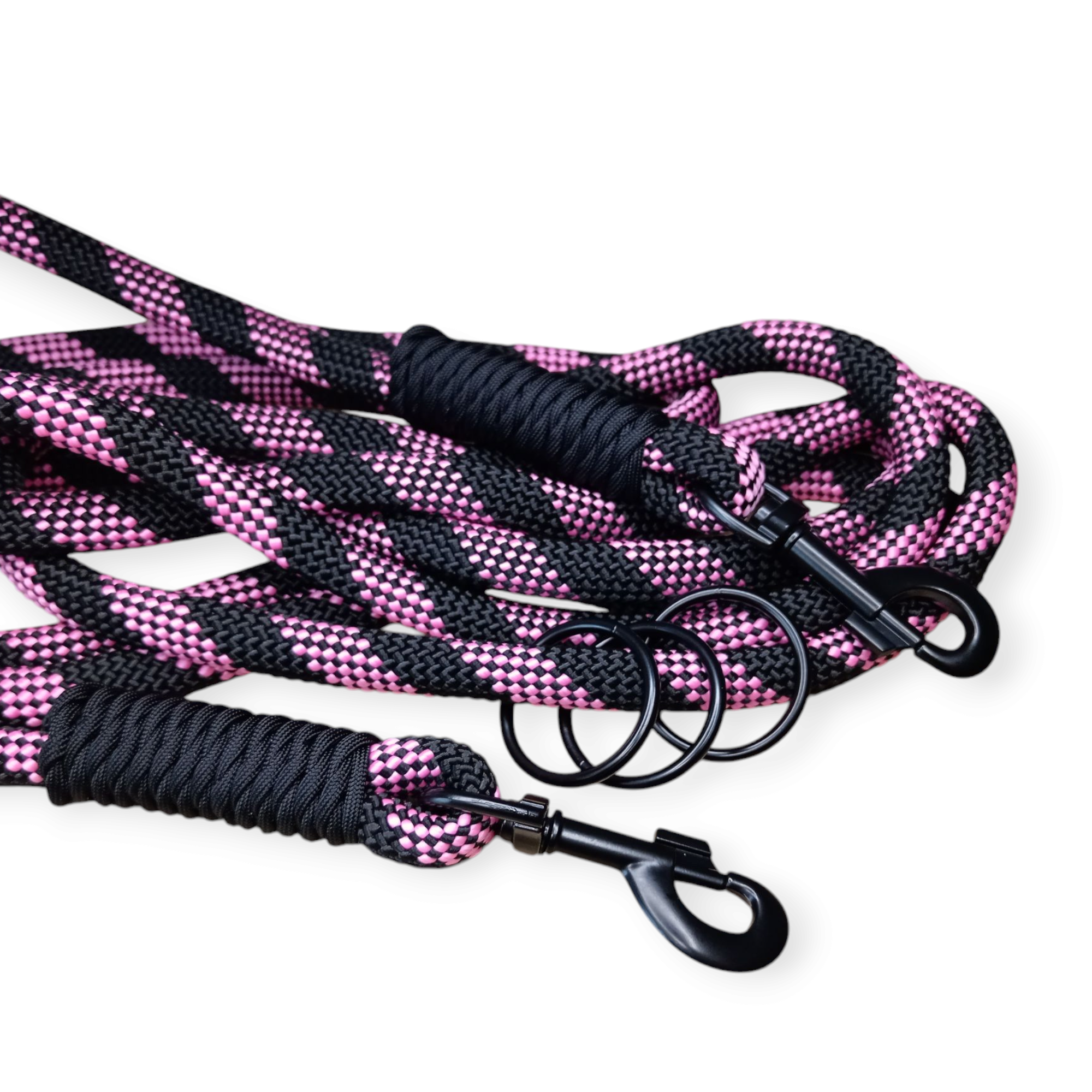 Každý spoj na vodítku je pečlivě ručně šitý sedlářskou nití, což zaručuje vysokou odolnost. Navíc, omotání paracordem nejen přidává na estetickém vzhledu, ale především zvyšuje celkovou pevnost vodítka.