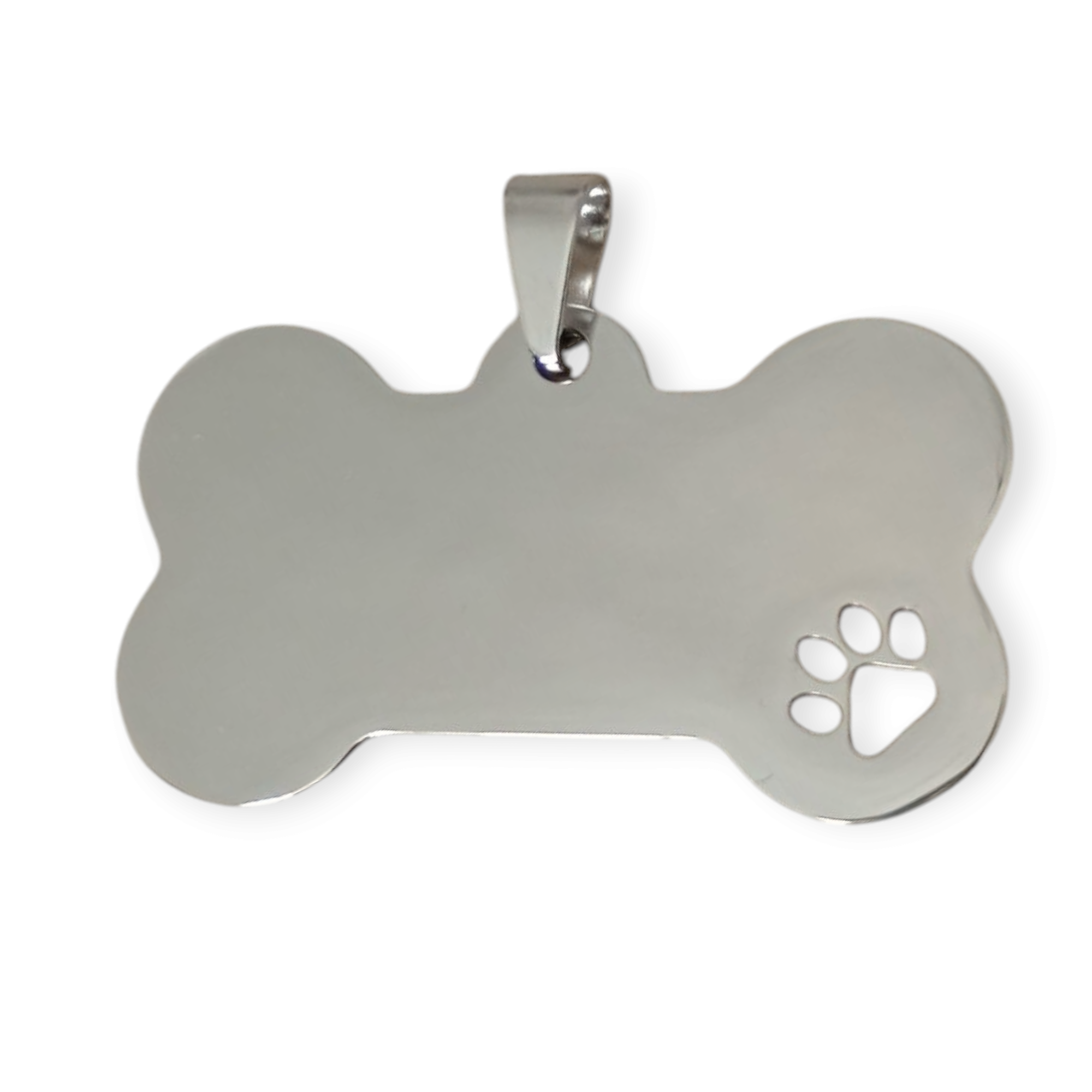 Známka je z nerezové oceli o velikosti 2,7x5 cm. Součástí je malý kroužek, který umožňuje snadné upevnění známky k obojku. Vhodná pro střední a velká plemena.