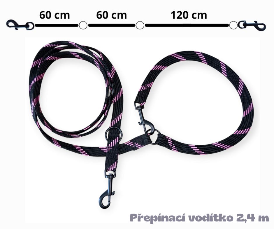 Přepínací vodítko v šířce 20 mm a délce 240 cm. Umožňuje snadné nastavení délky díky třem kroužkům pro přepínání, což poskytuje pohodlí při manipulaci. Vodítko lze snadno zkrátit na polovinu nebo dokonce hodit přes rameno, čímž máte volné ruce pro jiné aktivity.
