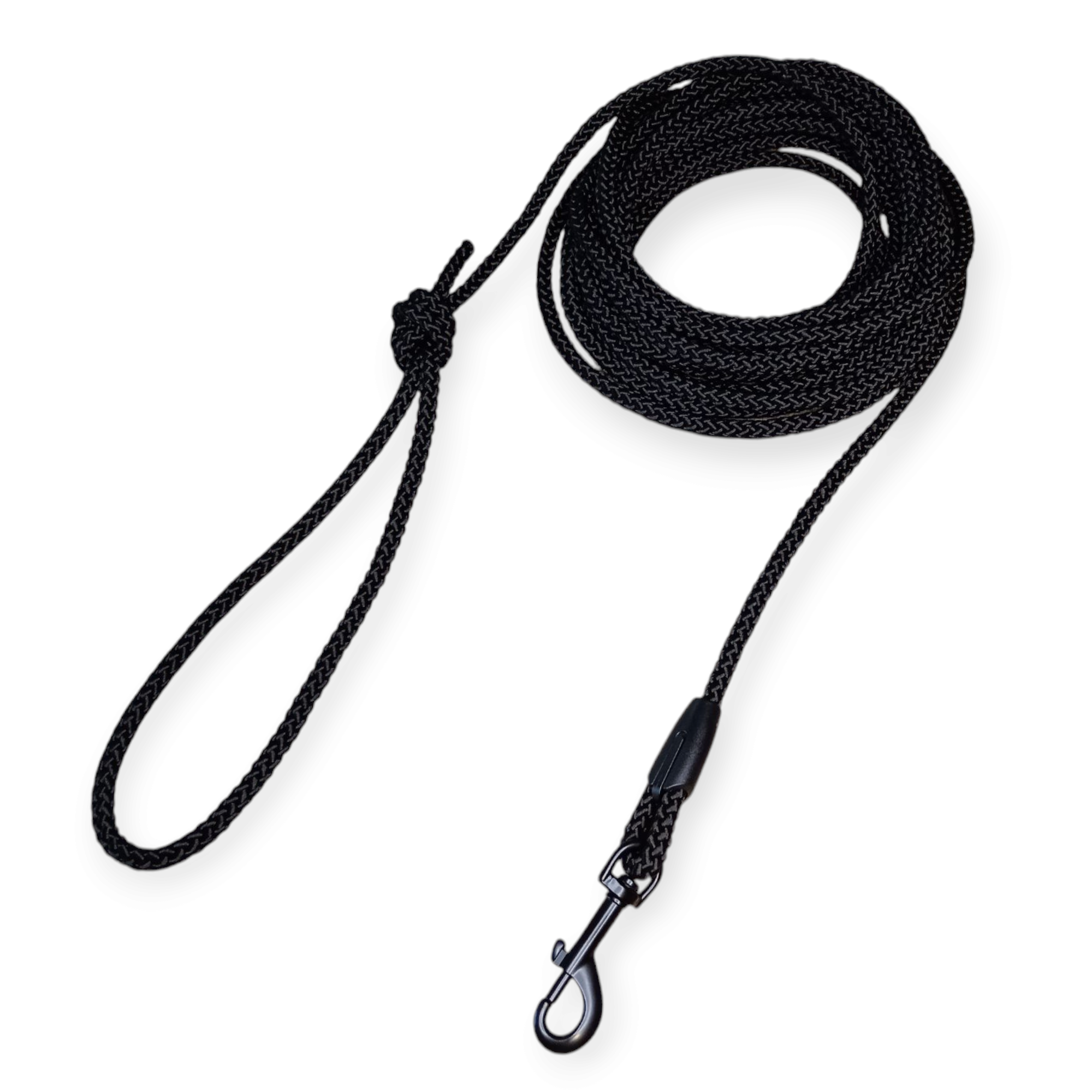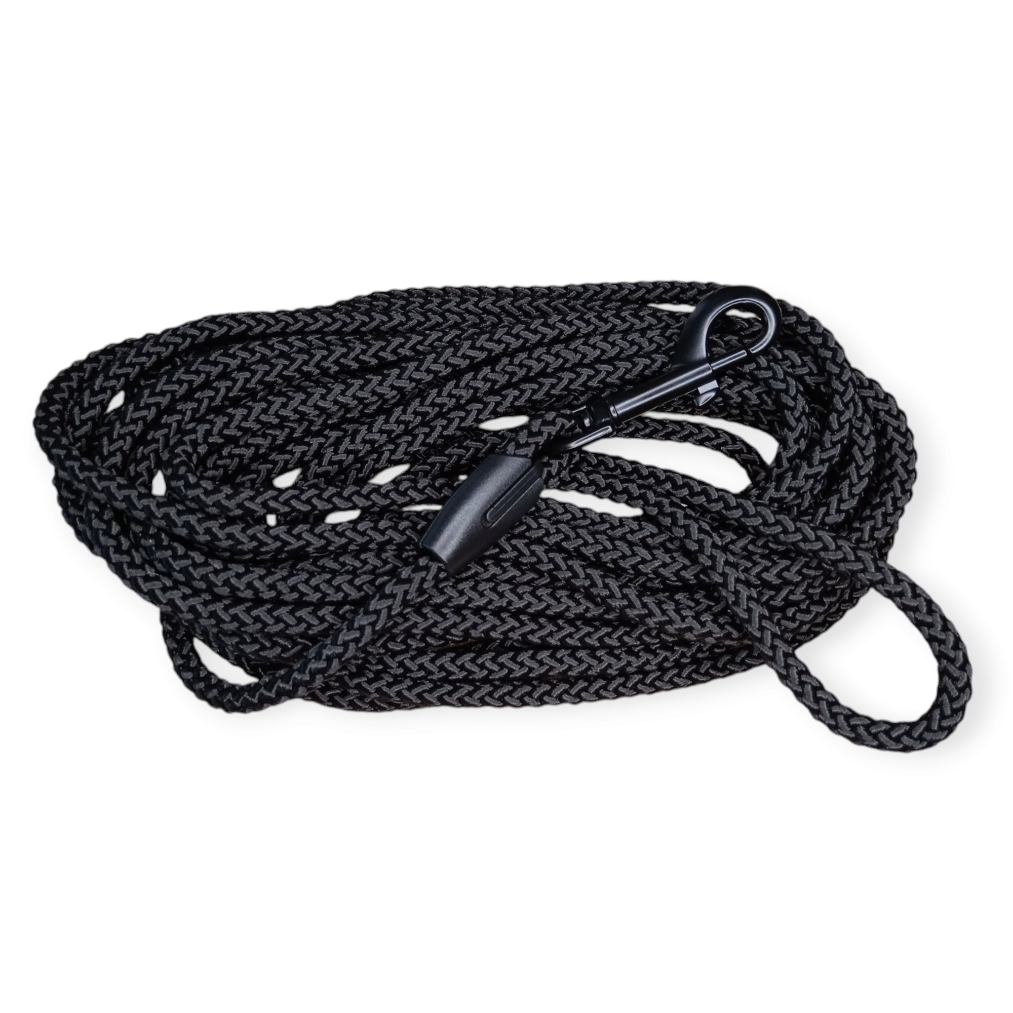 Stopovací vodítko v černé barvě o průměru 8 mm a délce 7 metrů je ideální volbou pro malé a střední pejsky.