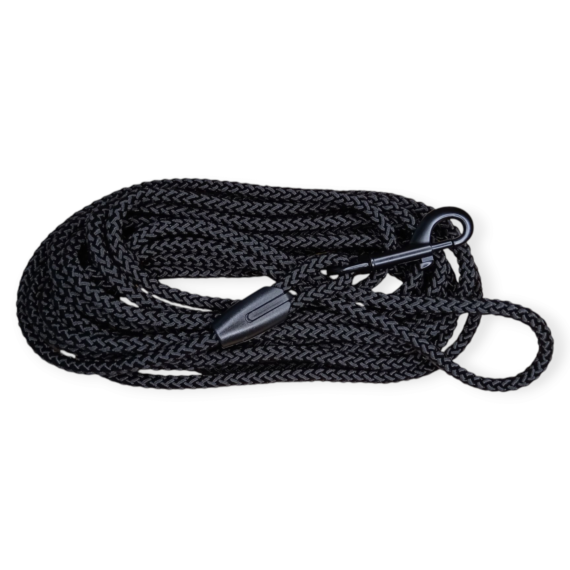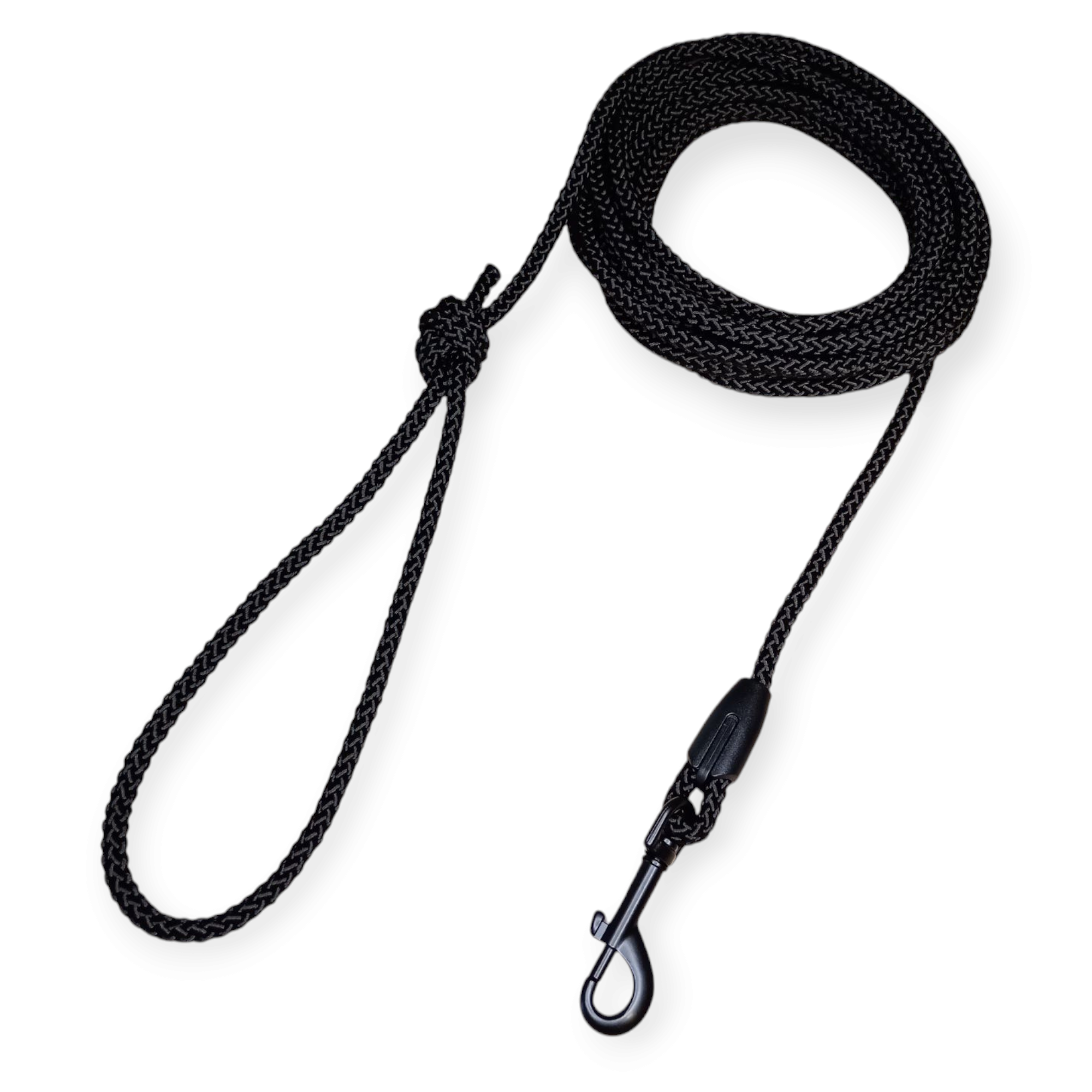 Stopovací vodítko v černé barvě o průměru 8 mm a délce 5 metrů je ideální volbou pro malé a střední pejsky.