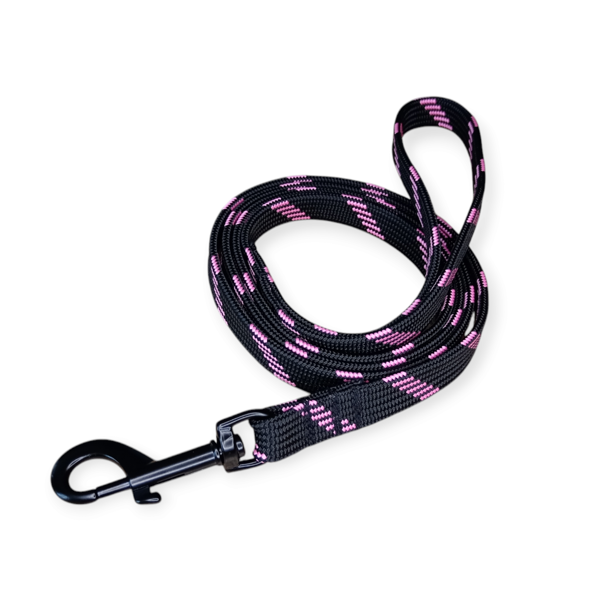 Vodítko v šířce 15mm, barevné kombinaci černé a růžové je ideální volbou pro malá i střední plemena.