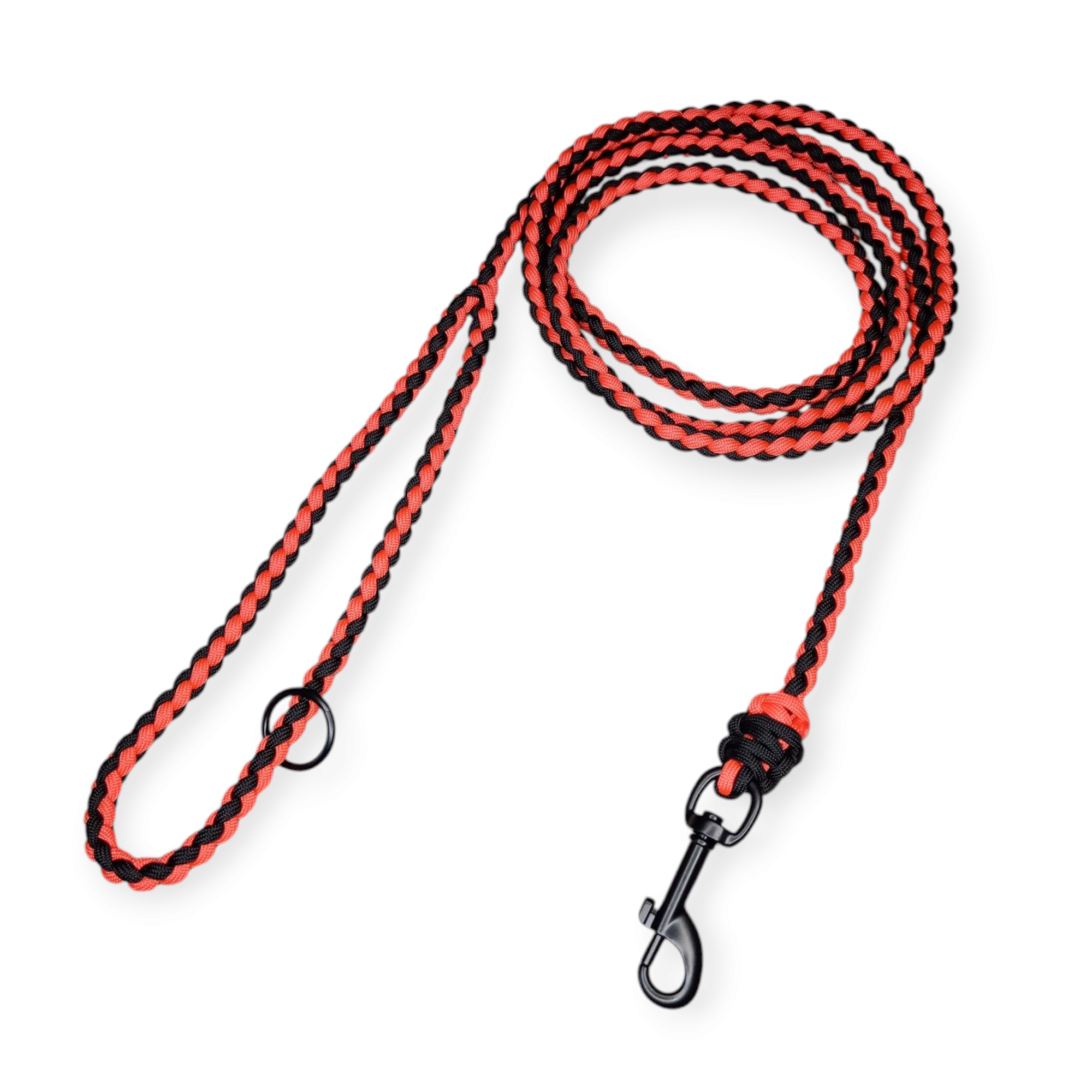 Vodítko pletené z Paracordu o průměru 9 mm je zárukou mimořádné pevnosti, z nichž každý paracord má nosnost přesahující 250 kg. Tato kombinace poskytuje vysokou spolehlivost a robustnost, kterou ocení jak majitelé, tak jejich mazlíčci. Ruční výroba zajišťuje každému kusu jedinečnost a pečlivé zpracování garantuje kvalitu, kterou od výrobku očekáváte. Paracord je materiál známý svou odolností vůči náročným podmínkám, díky čemuž je ideální volbou pro pevné a pohodlné vybavení pro vašeho čtyřnohého kamaráda.