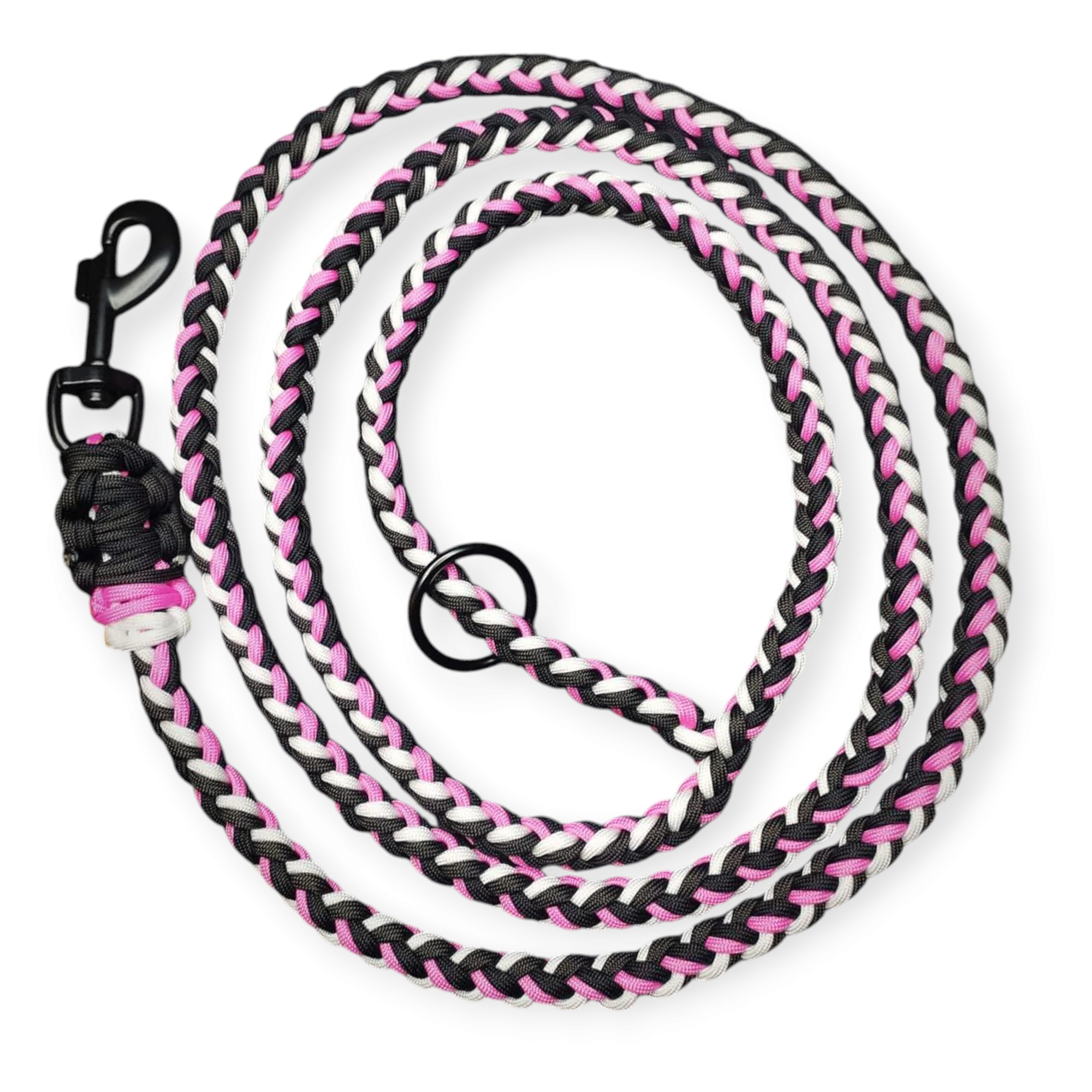 Paracord pletené vodítko o průměru 12 mm je zárukou mimořádné pevnosti a odolnosti díky použití osmi paracordů, z nichž každý má nosnost přesahující 250 kg. Tato kombinace poskytuje vysokou spolehlivost a robustnost, kterou ocení jak majitelé, tak jejich mazlíčci. Ruční výroba zajišťuje každému kusu jedinečnost a pečlivé zpracování garantuje kvalitu, kterou od výrobku očekáváte. Paracord je materiál známý svou odolností vůči náročným podmínkám, díky čemuž je ideální volbou pro pevné a pohodlné vybavení pro vašeho čtyřnohého kamaráda.